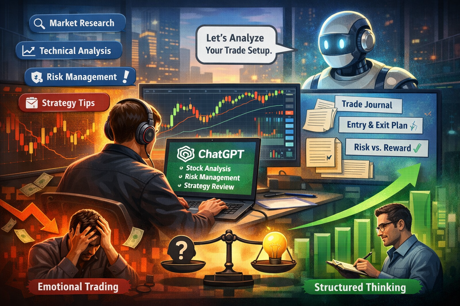 ChatGPT prompts help traders analyze setups, plan risk, and reflect on mistakes. Real trading skill comes from experience, discipline, and data driven decisions. ChatGPT assists with clarity but does not remove risk.